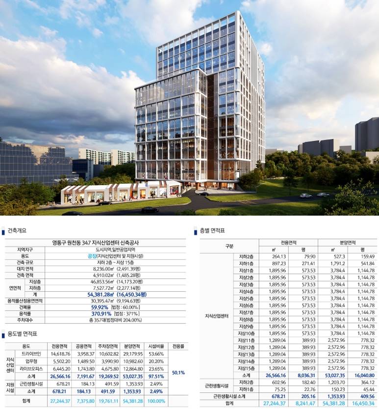 지식산업센터와 근린생활시설이 함께 하는 복합 구성